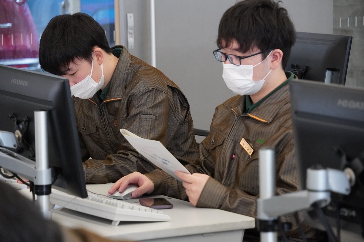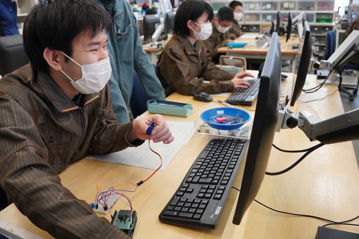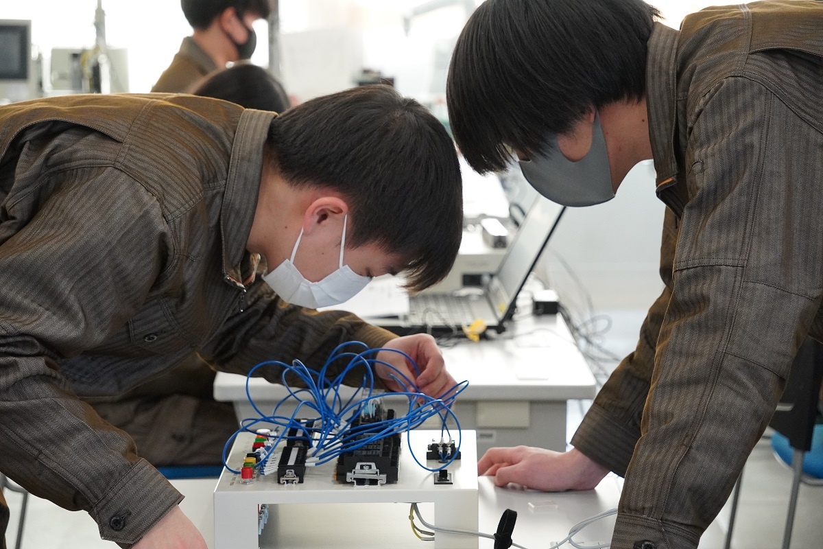 今日は1年生がコース実習でした。自動車・航空コース「シーケンス・PLC」、電気・制御コース「CAD」、情報・ITコース「電子回路設計・製作1」、電子・ロボットコース「CAD」に取り組みました。また授業後には1年生・2年生合同の表彰式が行われ、各種大会の成果がお披露目されました。