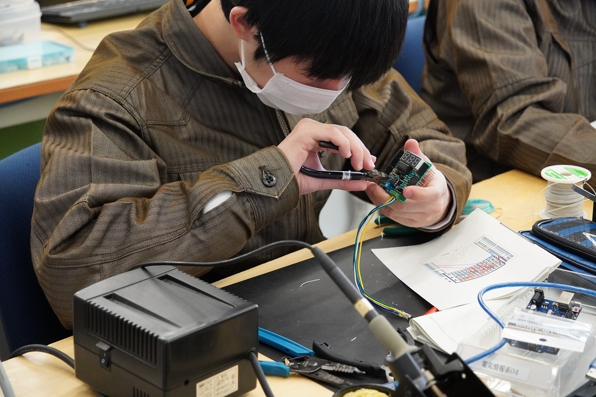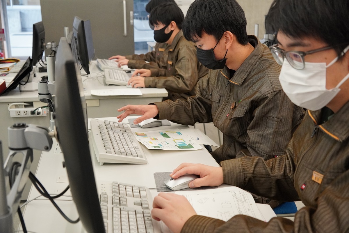 今日は1年生がコース実習に取り組みました。自動車・航空コース「自動車製造@トヨタ博物館&トヨタ会館」、電気・制御コース「電力設備実習@NTTファシリティーズ」、情報・ITコース「電子回路設計・製作2」、電子・ロボットコース「CAD」でした。