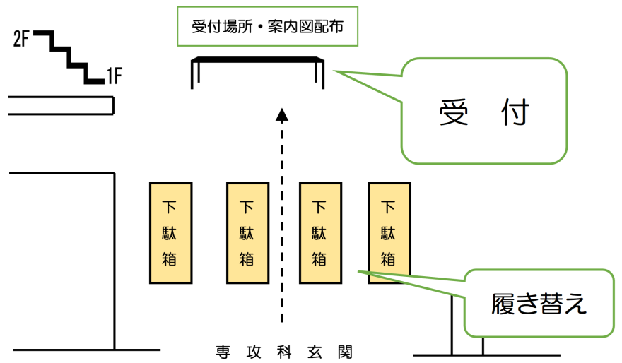 | 受付 | 専攻科昇降口前の階段下付近 | |