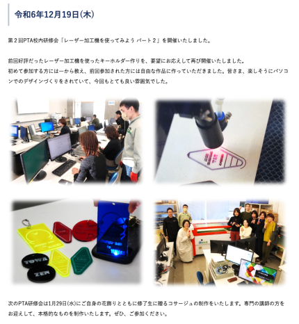 「PTAの皆様へ」を更新いたしました。 2024/12/25 トピックス ツイート 「PTAの皆様へ」を更新いたしました。 こちらからご覧いただけます。 https://www.aichi-te-ad.jp/pta.html
