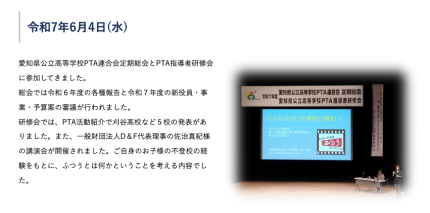 「PTAの皆様へ」を更新いたしました。 2025/06/10 トピックス ツイート 「PTAの皆様へ」を更新いたしました。 こちらからご覧いただけます。 https://www.aichi-te-ad.jp/pta.html